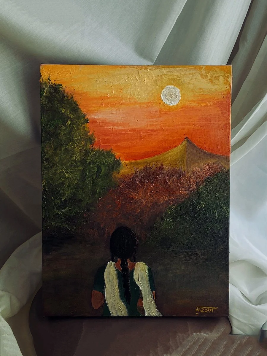 A revived oil painting inspired by a digital artwork that I created. A walk into bliss of the unknown with no fear of it.